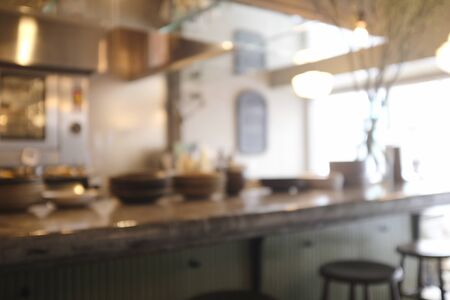 blurred picture of kitchen room, kitchen room vintage style, restaurant, dining room, home cooking for background