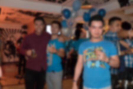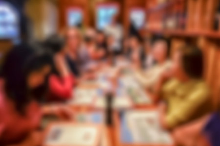 Blurred tourist group in restaurant and cafe for order and dinner in the evening. Blurred Background Concept.