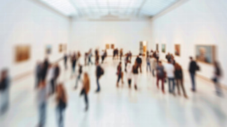 Softly blurred abstract museum interior with elegant lighting and depth