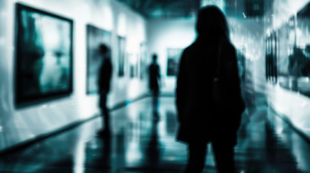 Blurred silhouettes of people mingled with distorted reflections of buildings all caught in the gl mirrors.