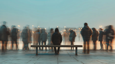 Feeling emotionally isolated in public surrounded by a faceless crowd.
