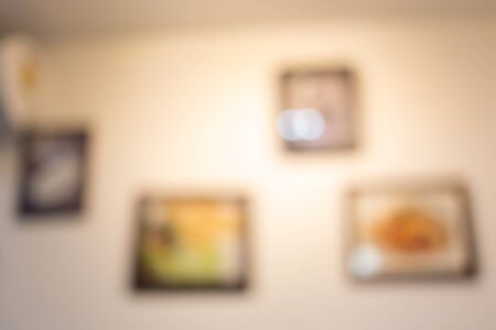 abstract blurred photo frame hanging on white wall, decoration interior in restaurant