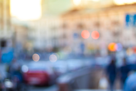 Blurred unfocused city view at day time. Unfocused people in the theme park