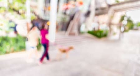 Blur Asian people walking in city outside of a shopping mall