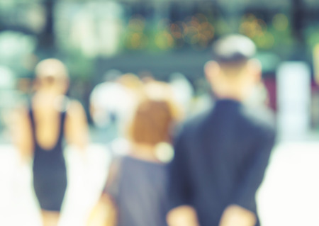 Blurred crowd of people in the city. Abstract blurred background.