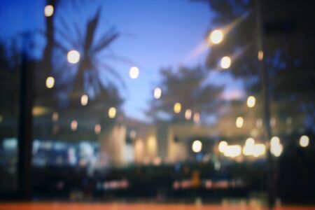 abstract blur outdoor hangout courtyard in cafe restaurant at night for background