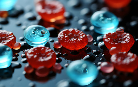 Discover a captivating microscopic world with colorful microorganisms floating gracefully in a liquid environment, showcasing intricate shapes and unique textures.