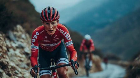 Intense cyclist s expression in sprint race at summer olympics, symbolizing determination and effort