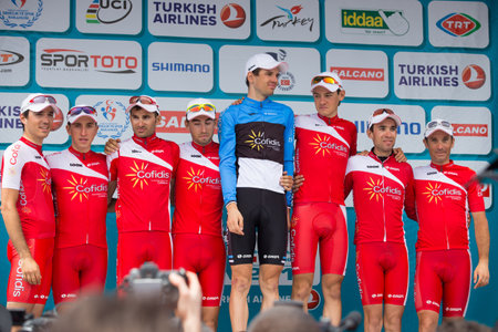 Bilbao, Spain - July 1, 2023: presentation of the Cofidis team in the first stage of the 2023 Tour with departure and arrival in Bilbao,