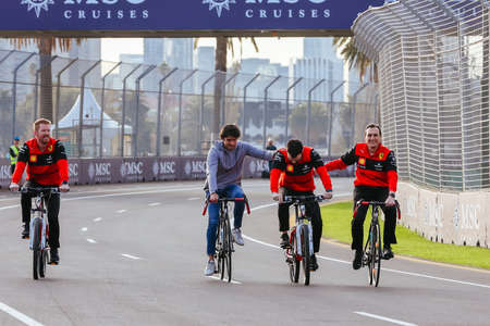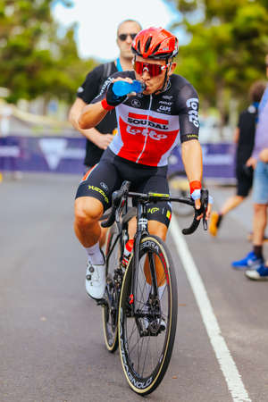 MELBOURNE, AUSTRALIA - FEBRUARY 1: Cadel Evans and team mates on the start line at the inaugral Cadel Evans Great Ocean Road Race