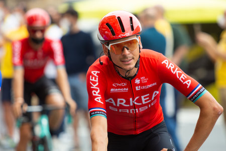 Bilbao, Spain - July 1, 2023: presentation of the Arkea-Samsic team in the first stage of the 2023 Tour with departure and arrival in Bilbao.