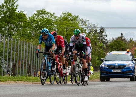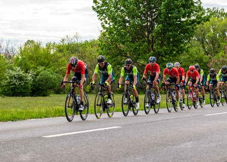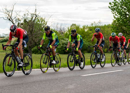 Hungary May 12, 2021: The riding during Stage 1. between Siofok and Kaposvar. The final stages of the Tour de Hongrie 2021 bicycle race on the highways and secondary country roads.