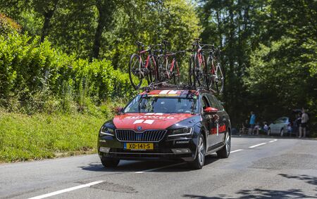 Bosdarros, France - July 19, 2019: The car of feminine Team Sunweb drives in Bosdarros during La Course by Le Tour de France 2019