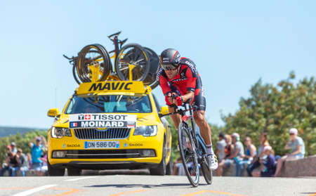 Col du Serre de Tourre,France - July 15,2016: The French cyclist Amael Moinard of BMC Team riding during an individual time trial stage in Ardeche Gorges on Col du Serre de Tourre during Tour de France 2016