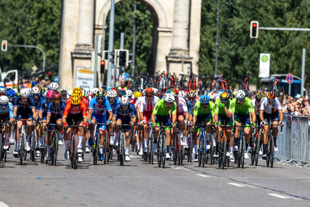 Munich, Germany - Aug 14, 2022: Competitors at the European Championships 2022. Mens Cycling Road Race in Munich, Germany