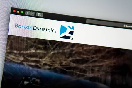 Miami / USA - 07.18.2019: Boston Dynamics company website homepage. Close up of logo. Can be used as illustrative for news media or other websites, good for business or marketing concept.
