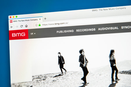 LONDON, UK - MAY 29TH 2018: The homepage of the official website for BMG Rights Management - the international music company focused on music publishing, recording rights and distribution, on 29th May 2018.