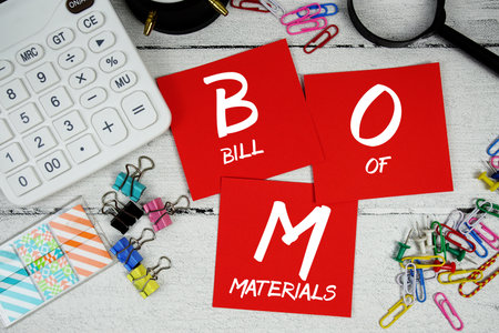 BOM Abbreviation of Bill Of Materials text phrase of business and financial concept