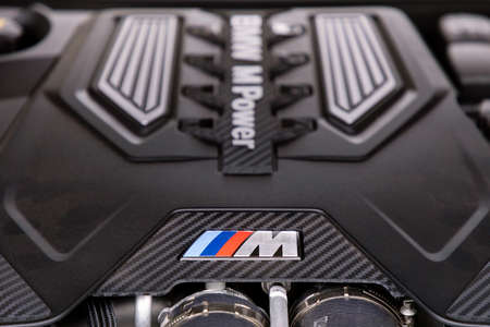 PRAGUE, CZECH REPUBLIC - DECEMBER 15, 2020: Engine of BMW M-series car in Prague, Czech Republic, December 15, 2020