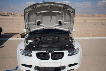 Lindesnes, Norway - August 18 2005: A BMW S50B30 engine and strut bar of a E36 M3.