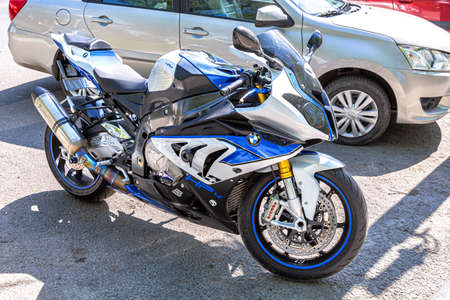 STAVROPOL, RUSSIA - MAY 28, 2020: BMW black sportbike. Modern powerful motorcycle in Stavropol city, Russia