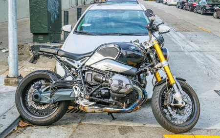 Samara, Russia - May 8, 2021: BMW motorcycle on the city street