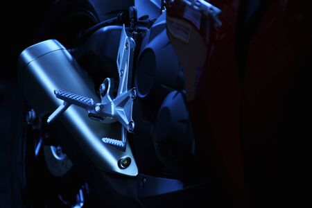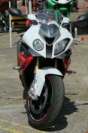 Mugello Circuit, IT, July 2021: Detail of BMW M 1000 RR on display in the Paddock of Mugello Circuit, Italy.