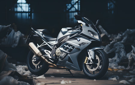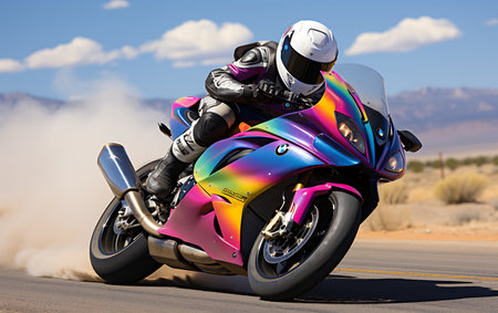 Modern Motorcycle Design: A Powerful Machine Posing in a Dusty Desert