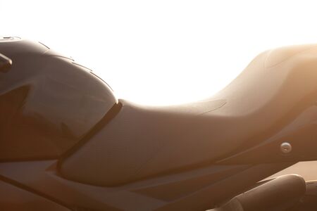 Motorcycle rider riding on the road. Close-up of a sport bike.