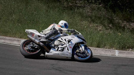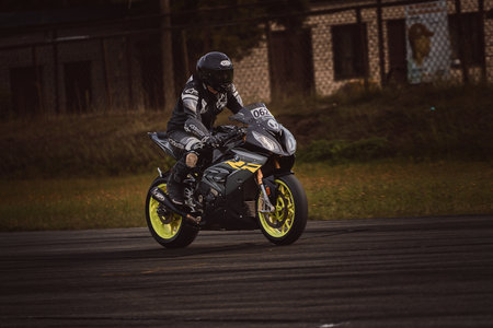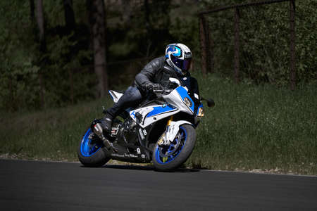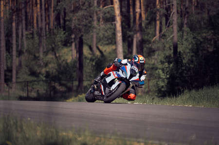 10-05-2021 Lithuania, Kaunas Moto rider, Motorcyclist rides at fast sport bike.
