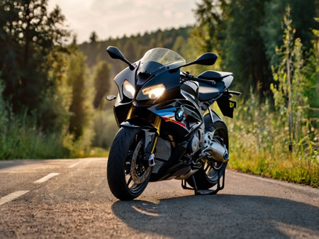 Sleek Black Motorcycle Ready to Ride on an Adventure Road Trip