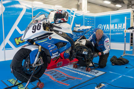MOSCOW - JUNE 5: Racing bike is prepared for the Race Cup Moscow Region Governor on June 5, 2016 in Moscow Raceway