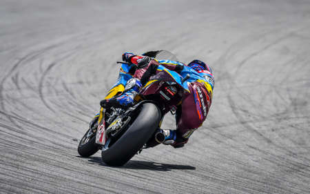 Sepang, Malaysia - Feb. 08, 2020 : Bradley Smith of Great Britain and Aprilia Racing Team during the pre-season MotoGP winter test at the Sepang International Circuit in Sepang
