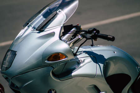 Limassol Cyprus May 14, 2020 Closeup of a motorcycle parked in the streets of Limassol in Cyprus island