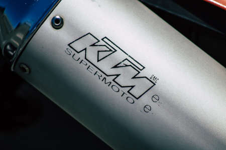 Limassol Cyprus May 24, 2020 Closeup of a KTM motorcycle parked in the streets of Limassol in Cyprus island