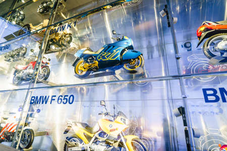 MUNICH, GERMANY - MARCH 15: BMW cars and motorcycle at the BMW Museum and Welt on March 15, 2016 in Munich, Germany. The company was founded in 1916.