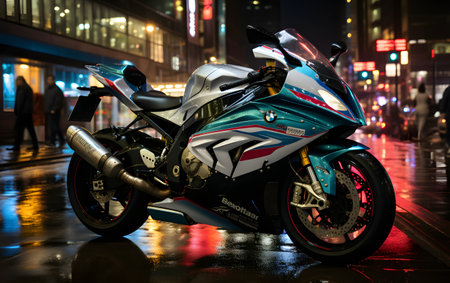 Modern powerful sports motorcycle dark background.