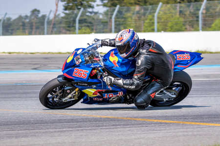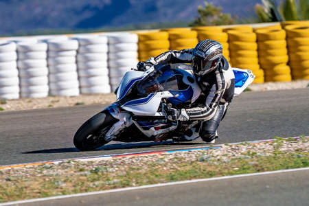 Almeria, Spain - June 27, 2019 : Motorcycle race training at Motorcycle circuit in the desert of Almeria in Spain, Europe