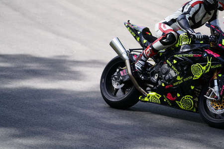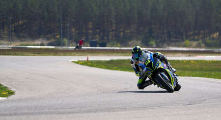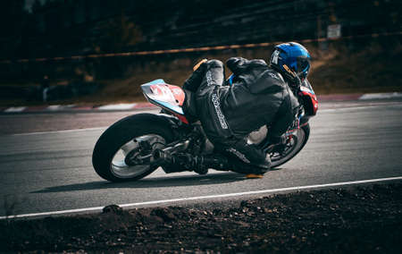 10-05-2021 Lithuania, Kaunas Moto rider, Motorcyclist rides at fast sport bike.