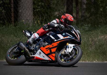 Misano Adriatico, Italy - June 20, 2015: BMW S1000 RR of Motos Vionnet Team, driven by VIONNET Eric in action during the Superstock 1000 Qualifying during the FIM Superstock 1000 - race at Misano World Circuit on June 20, 2015 in Misano Adriatico, Italy.