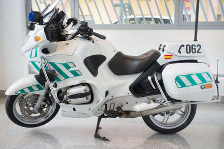 Badajoz, Spain - Oct 24th 2018: Spanish Civil Guard motorcycle, Traffic Group. Vehicle exhibited at Spanish Traffic Bureau
