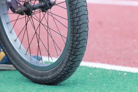 Bicycle wheel on the stadium track