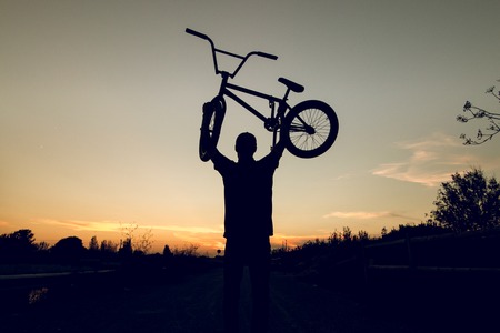 Silhouette of a guy with a bmx bicycle. BMX rider