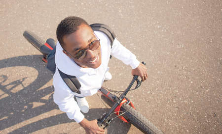 Portrait of a young man with a bmx bicycle. BMX rider