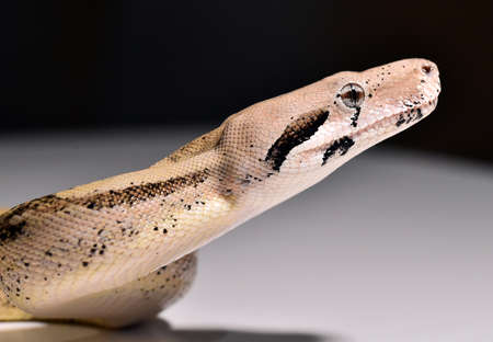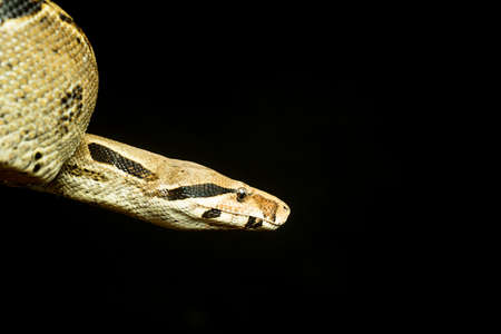 Close-up head of Boa constrictor snake imperator color,lying on isolated black background with reflection