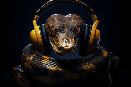 Stylized Snake with Sparkling Scales and Glasses in a Neon-Infused Dreamscape AI