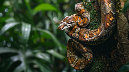 coiled snake with stunning patterns in natural habitat, created with generative ai