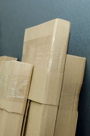 Stacks of cardboard boxes The concept of delivery and unloading of goods, cardboard boxes. Heap of packings from paper, carton