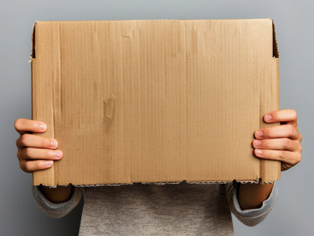 Close-up of hands holding a large cardboard box, perfect for moving, storage, or delivery themes.