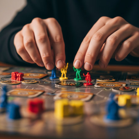 Hand Placing Red Game Piece on Board Game